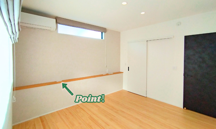 寝室は腰高の壁を室内側に少し出し、天板にコンセントを設置。