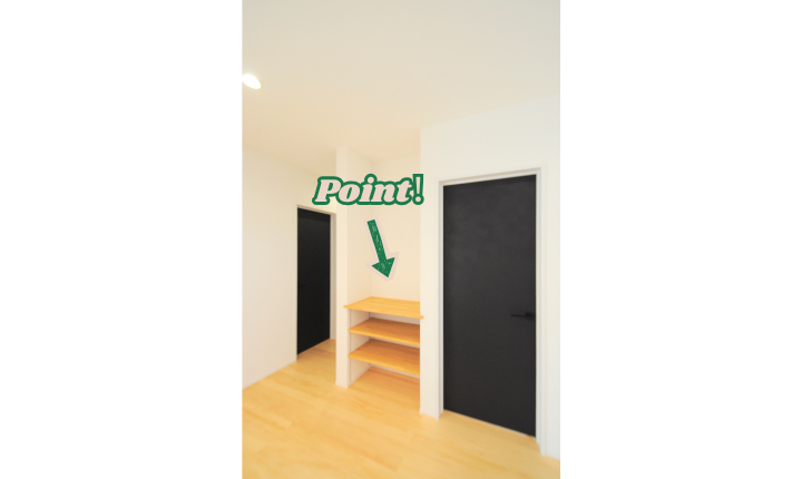 LDKの一角にあるこちらは、とりあえずバッグを置いたりすることもできる使い勝手の良い場所です。