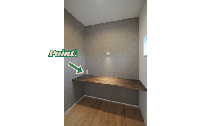 カウンターを造作し、ご希望の場所にコンセントも取り付けました。